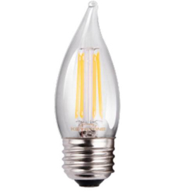 3. Satco S10523 4 Watt LED; Reminiscent; Flex Gray Coil Filament; B11; Candelabra Base; 2700K CCT; Clear; 120 Volt; 2pk