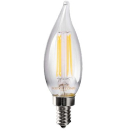 2. Satco S11526 4 Watt LED; Reminiscent; Flex Gray Coil Filament; CA11; Candelabra Base; 2700K CCT; Clear; 120 Volt
