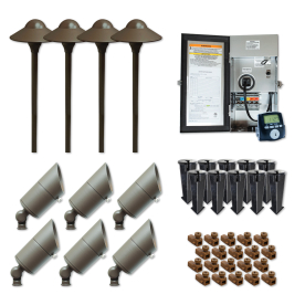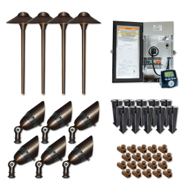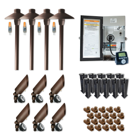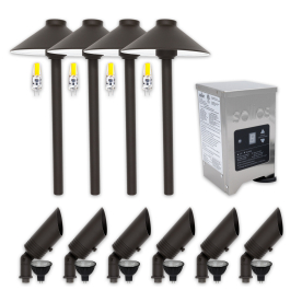 8. Sollos SSP-1-TZ Lighting Kit includes 6 Bullet Lights with MR16 LED Lamps, 4 Path Lights with JC3 LED lamps, and a 150 Watt Transformer 27806 - Textured Bronze Finish