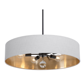 12. AFX CLNP30MBBK-WHGD Celine CALP Series 30" 5-Light Pendant 120 Volt E26 Base Black Canopy and White Outer Shade with Gold Interior