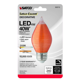 3. Satco S22712 4 Watt C15 LED, Satin Spun, Amber, Medium base, 2100K, 240 Lumens, 120 Volt, Carded