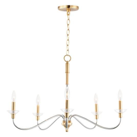 3. Maxim 25375CLPCSBR Clarion 5/8-Light Chandelier 40W 120V Polished Chrome/Satin Brass Finish