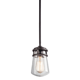 Kichler 49446AZ Lyndon 9.5" 1 Light Pendant with Clear Seeded Glass Architectural Bronze Finish 75 Watts 120 Volt
