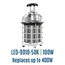 2. Light Efficient Design LED-9210-50K "100W CAGED HIGH BAY AREA LUMINAIRE, INTEGRATED 6' POWER CORD AND QUICK INSTALL METAL HOOK INLCUDED"