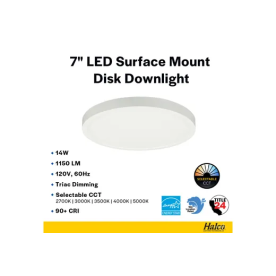 6. Halco Lighting Technologies DSK-7-CS-120V Surface Mount Disk 7in 14W 1200 Lumens 27/30/35/40/50K Color Select 120V Triac Dim 83898