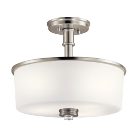 Kichler 43926NI Joelson 14.25" 3 Light Semi Flush with Satin Etched Cased Opal and Clear Glass Accent Glass in Brushed Nickel Finish 75 Watts 120 Volt