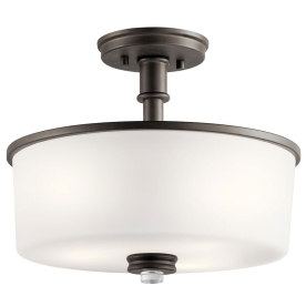 Kichler 43926OZ Joelson 14.25" 3 Light Semi Flush with Satin Etched Cased Opal and Clear Glass Accent Glass in Olde Bronze Finish 75 Watts 120 Volt