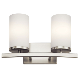 Kichler 45496NI Crosby 15" 2 Light Vanity Light Satin Etched Cased Opal Brushed Nickel Finish 100 Watts 120 Volt
