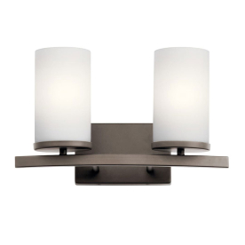 Kichler 45496OZ Crosby 15" 2 Light Vanity Light Satin Etched Cased Opal Olde Bronze Finish 100 Watts 120 Volt