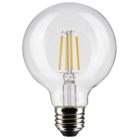 10. Satco S21234 6 Watt G25 LED, Clear, Medium base, 90 CRI, 2700K, 120 Volt