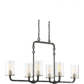 5. Satco 60-6124 6 Light, Sherwood Island Pendant, Iron Black with Brushed Nickel Accents Finish, Clear Glass, Lamps Included