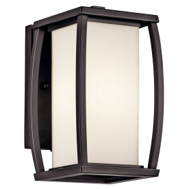 Kichler 49336AZ Bowen 9.5" 1 Light Wall Light Satin Etched Cased Opal Glass Architectural Bronze Finish 75 Watts 120 Volt