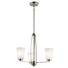 Kichler 44050NI Tao 3 Light Chandelier Satin Etched Cased Opal Glass Brushed Nickel Finish 75 Watts 120 Volt